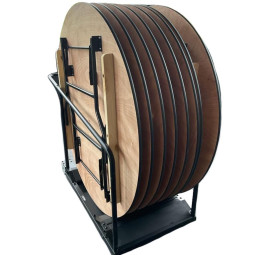 Un chariot pouvant accueillir tables rondes ou tables rectangulaires.