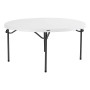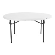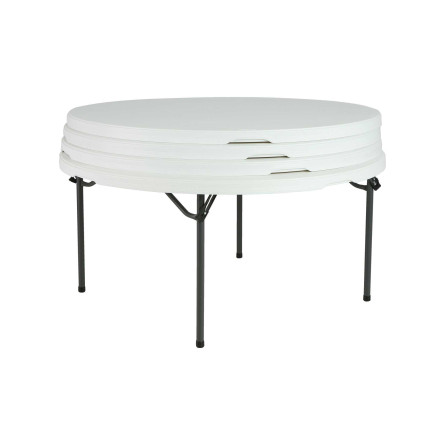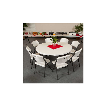 La table pliante ronde 152 cm en polyéthylène haute densité HDPE blanche peut accueillir jusqu'à 8 personnes. La table Lifetime est idéale pour toute personne à la recherche d'une table facile à stocker et à transporter, du fait que les pieds puissent s'encastrer dans l'épaisseur de la table. . Elle est également empilable dite "Nesting" permettant de gagner 20% en hauteur de stockage