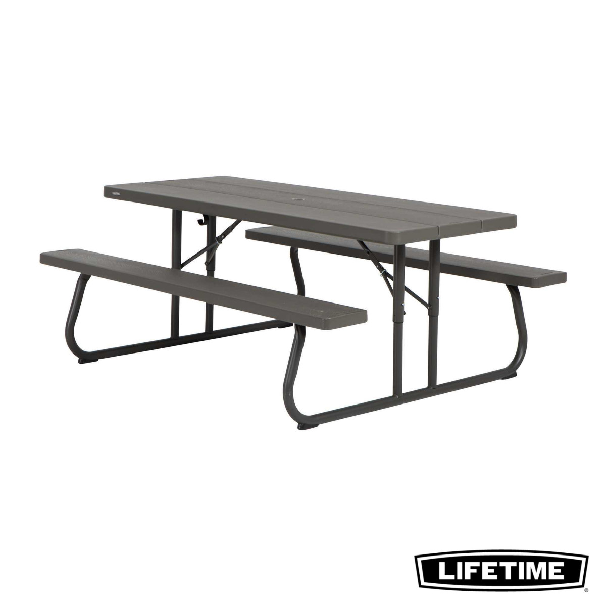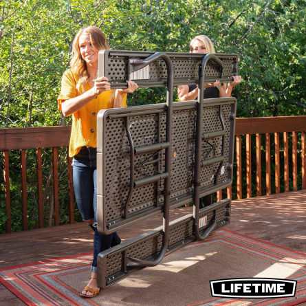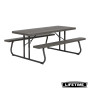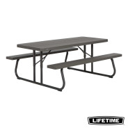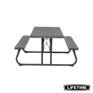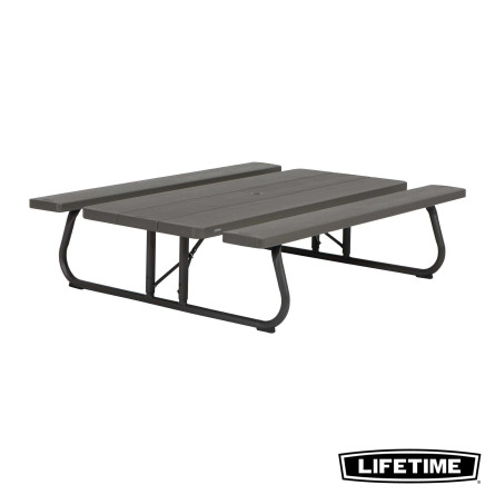 La table pliante 6 personnes de LIFETIME en polyèthyléne haute densité, intégre les bancs. Son piètement se rabat pour un rangement facile et peu encombrant.