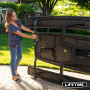 Les bancs se fixent sous la table et l'ensemble se replie à plat pour faciliter le transport et le rangement.