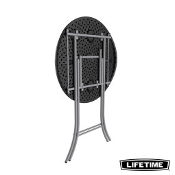 Hier is de ronde klaptafel met zijn Polyethyleen blad / thermo-gelakte stalen structuur diameter...
