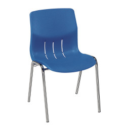 Stoel verkrijgbaar in 18 kleuren, zwart of verchroomd onderstel, brandklasse M4.