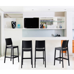 De hoge kruk in zwarte kleur, snel te installeren.